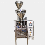 Collar Type Pouch Packing Machine fills granules, powders, or snacks into pouches using an integrated cup filler, ensuring precise portion control and high-speed packing. Suitable for medium to large-scale production.