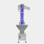 Elevators for transferring cans and caps in nicotine production lines.